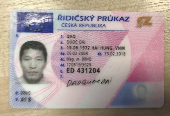 Giấy phép lái xe của ông Đào Quốc Oai được cảnh sát điều tra Cộng Hòa Séc lưu hình